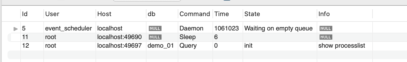 id: 当前登录用户的 id 可以用 select connection_id(); 查看当前登录的 id 多少