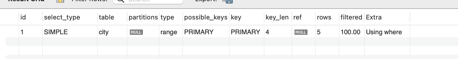 type: 链接类型, 性能由好到坏顺序为 system > const > eq_ref > ref > ref_or_null > index_merge >