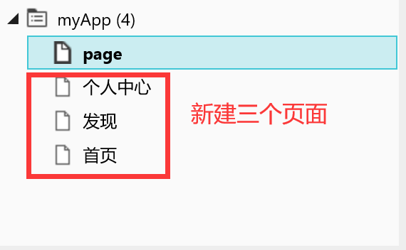 - 制作原型内容页面:在项目树中新建三个内容页面,在左侧的组件选项卡中搜索需要的组件,拖拽应用即可,为简单演示仅在三个页面添加说明文字。