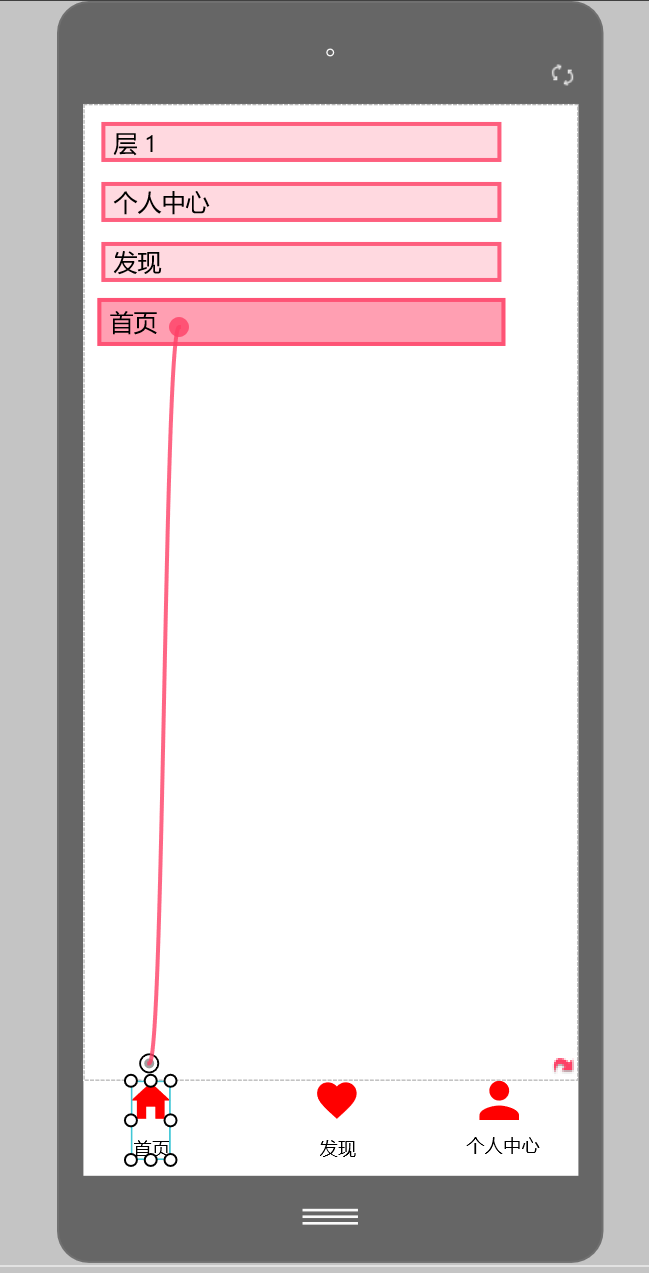 b. 将底部导航栏的三个选项依次连接到内容面板的三个层。