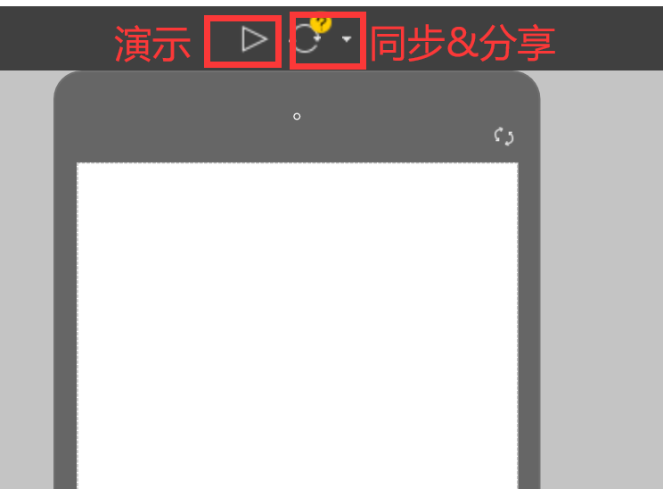- 演示与分享:如图所示,点击相应按钮,即可将自己设计的原型进行演示或分享。
