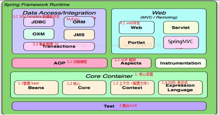 功能:使用基本的JavaBean代替EJB(开发和部署多层结构的、分布式的、面向对象的Java应用系统的跨平台的构件体系结构),并提供了更多的企业应用功能。