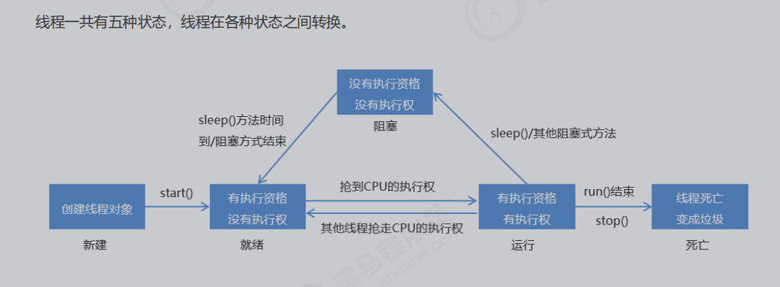 run():封装线程执行的代码,直接调用,相当于普通方法的调用