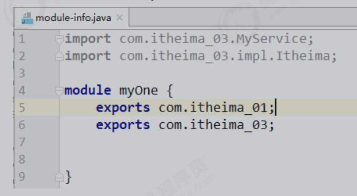 2. 在myOne模块中修改module-info.java文件,添加以下内容