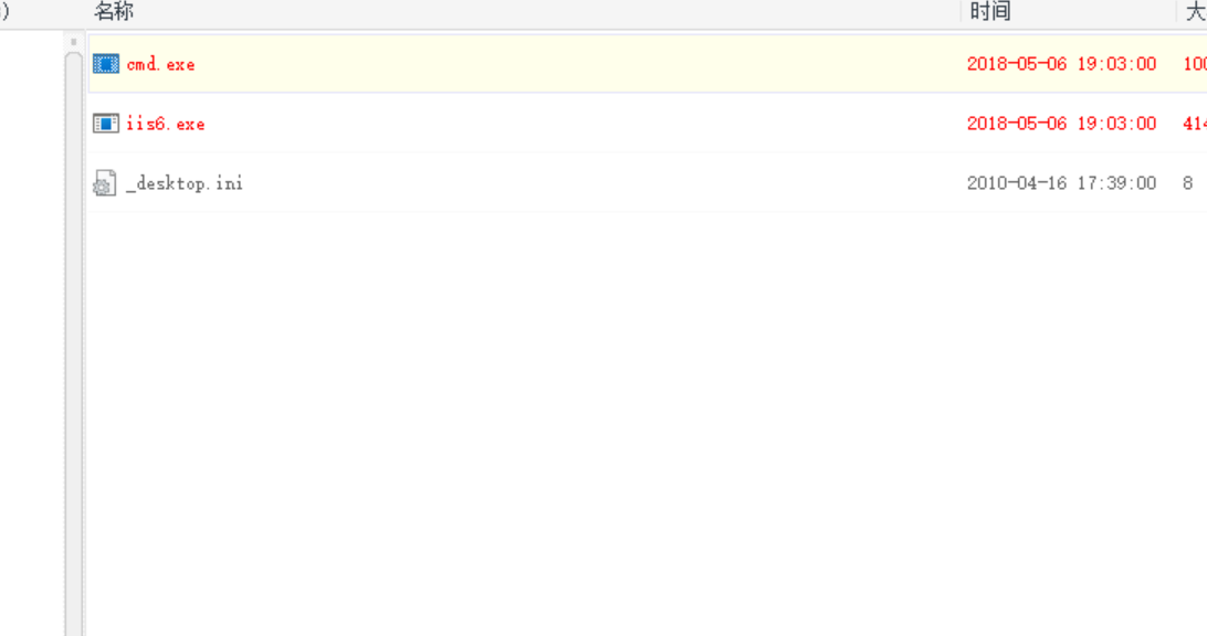 是因为使用cmd需要用到外部接口wscript.shell。但是wscript.shell仍然在C盘,C盘我们仍然无法访问。这可怎么办?那么就只能再上传一个已经组装好的wscript.shell,也就是下图的iis6.exe