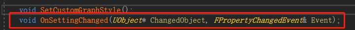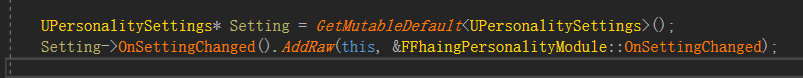 1 TSharedPtr<ISettingsSection> SettingS; 2 SettingS = FModuleManager::LoadModuleChecked<ISettingsModule>("Settings").RegisterSettings("Project","Plugins", 3 TEXT("UE4EditorCustomize"), FText::FromString("UE4 EditorCustomize"), 4 FText::FromString("Setting For UE4EditorCustomize"), GetMutableDefault<UEditorCustomizeSetting>()); 5 SettingS->OnModified().BindRaw(this, &FUE4EditorCustomizeModule::OnSettingModified);
