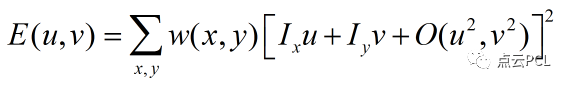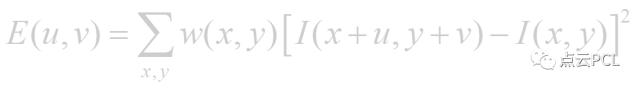 其中 w 代表窗函数,某个x,y为图像坐标,u,v是一个移动向量(既反应移动方向,也反应移动大小)。