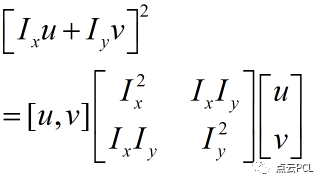 显然,E(u,v)可以用另外一种形式来表示了。最终可以表达为协方差矩阵的形式。
