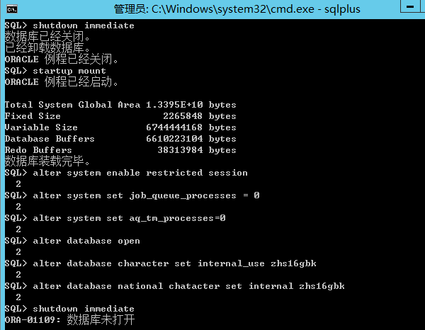 将字符集进行转换,AL32UTF8转成ZHS16GBK
