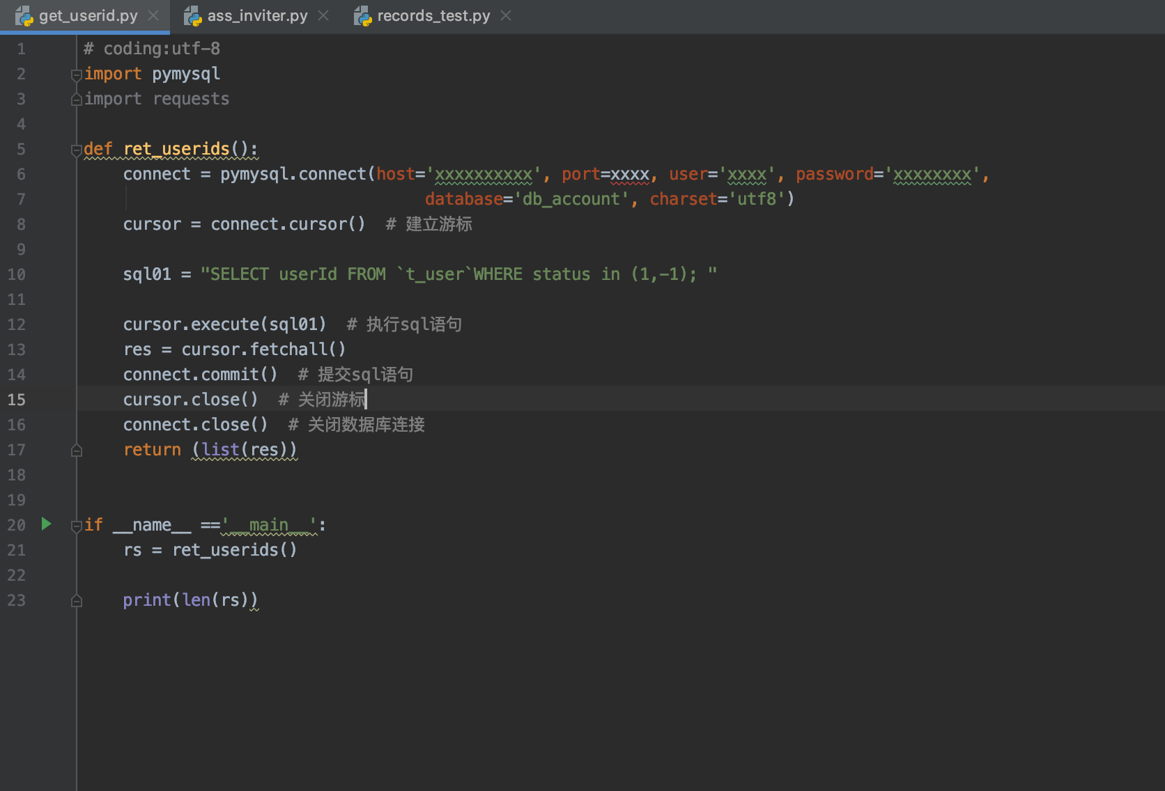 注:当user表中数据量过大时,可考虑使用python的多进程模块multiprocessing,把主逻辑独立封装成一个函数,开启多个进程提高运行速度。