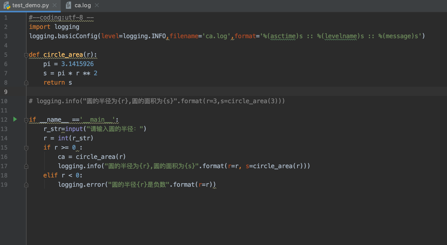 logging.basicConfig(level=logging.INFO,filename='ca.log',format='%(asctime)s :: %(levelname)s :: %(message)s’)