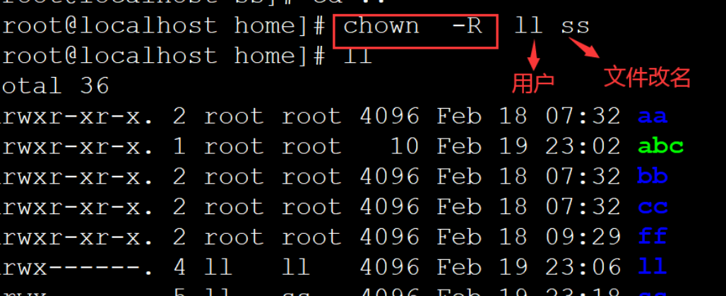 递归修改目录下所有的子目录和文件的用户 chown -R 用户名 文件