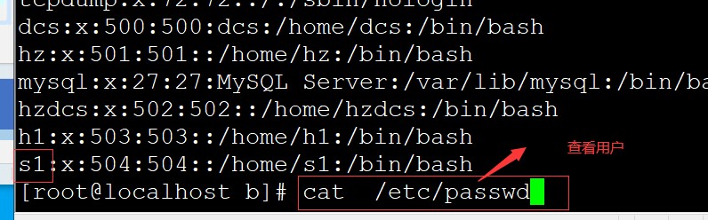 查看系统中的用户 cat /etc/passwd