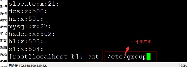 查看系统中用户组 cat /etc/group