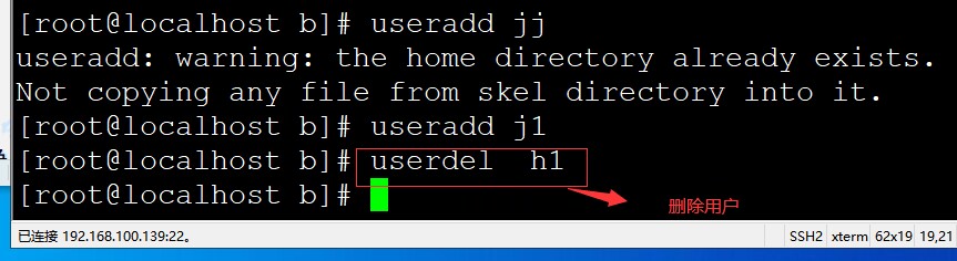 删除用户 userdel 用户名