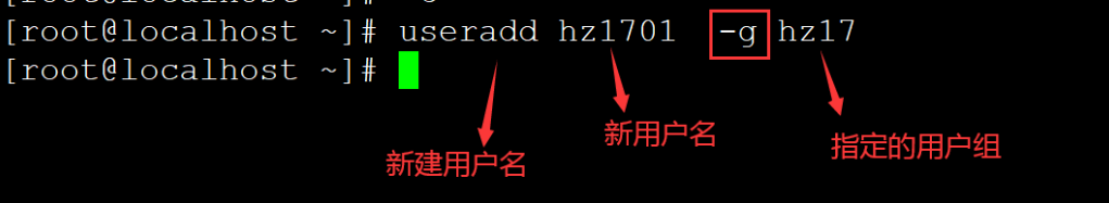 创建用户并指定用户组 useradd 用户名 -g 用户组