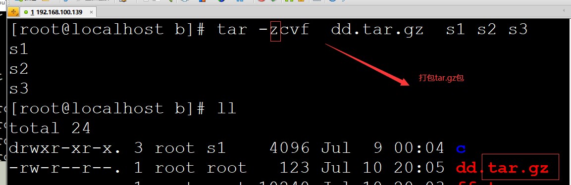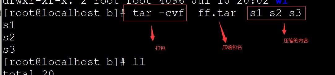 压缩 tar -cvf 压缩包 文件1、文件2,文件3等