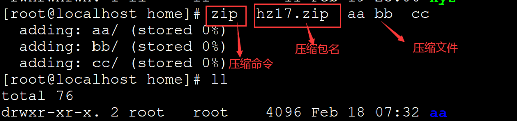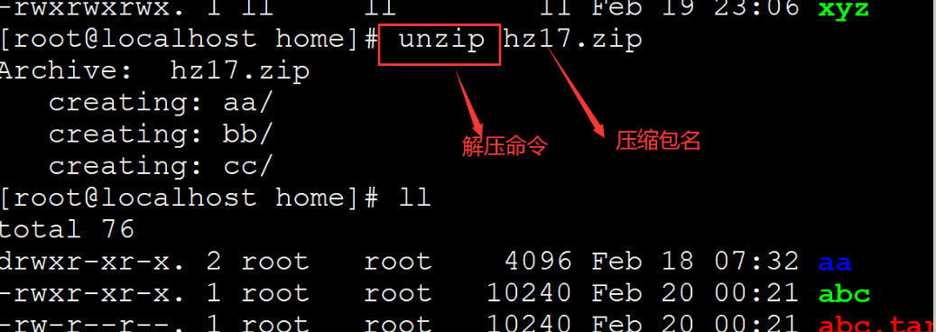 解压zip包 unzip 压缩包名.zip