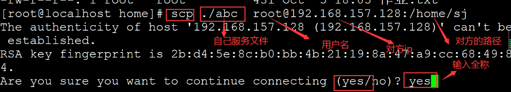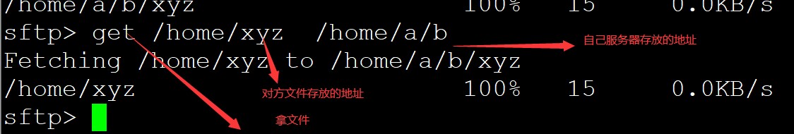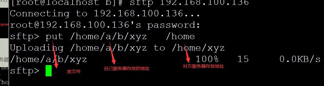 建立联系后放文件 put 自己服务的路径和文档 对方服务器存放的地址
