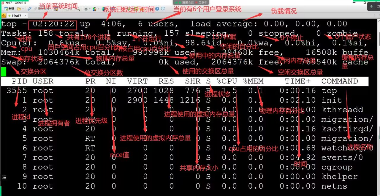top 退出ctrl +z或ctrl+c