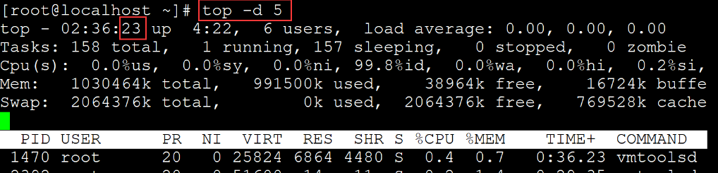 设定间隔时间查看资源使用情况 top -d 秒数