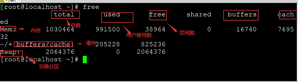 查看内存使用情况 free