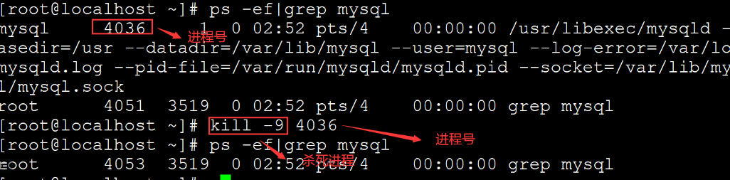 ps -ef|grep mysql 查看数据的服务
