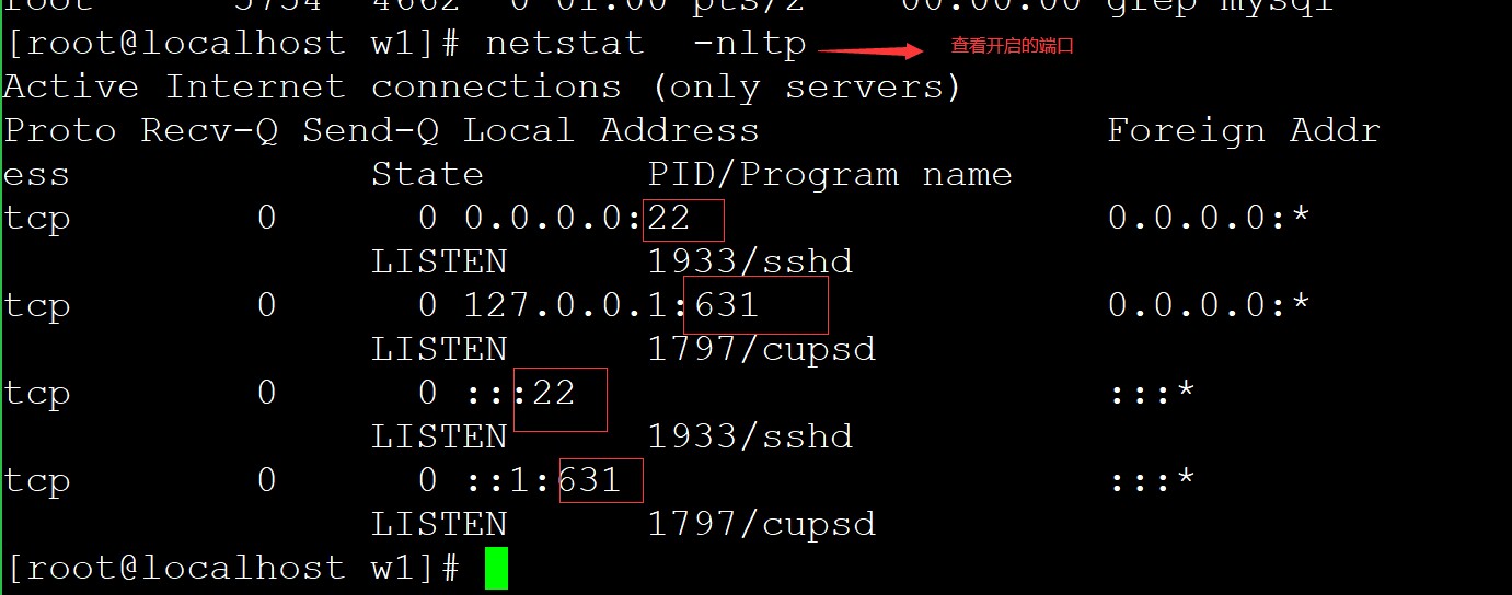 netstat -nltp 查看所有已经开启的端口