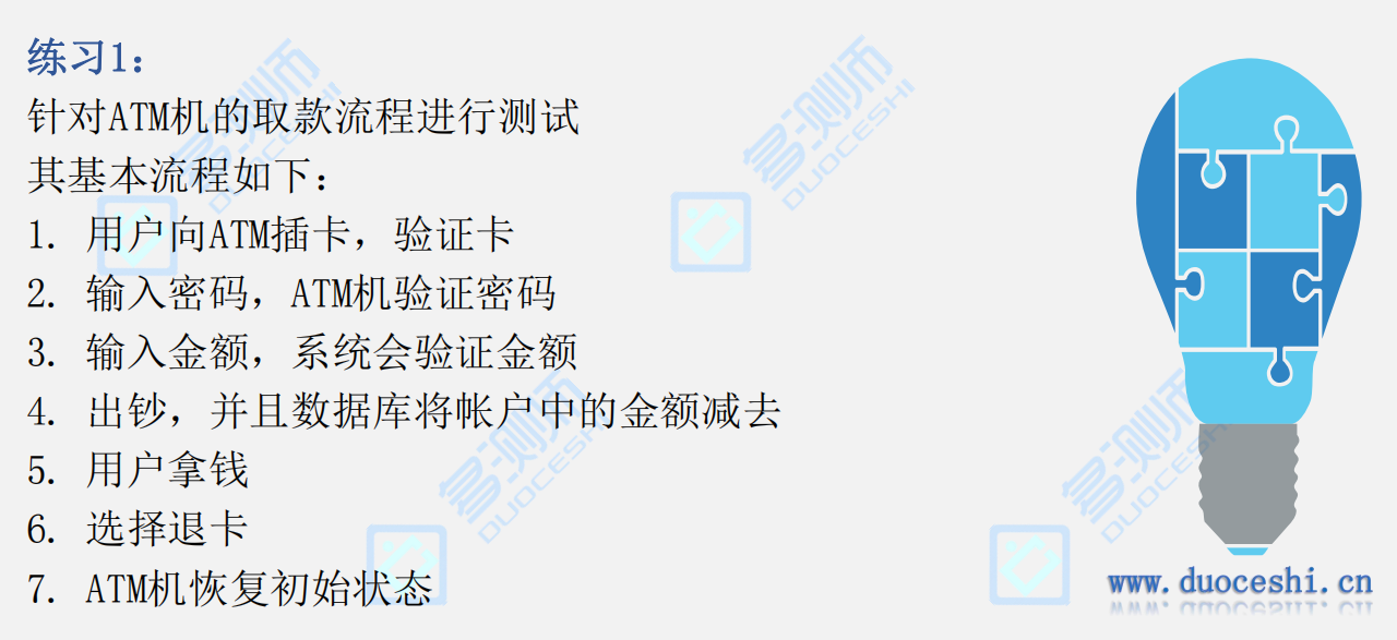 (2)流程分析:是将软件系统的某个流程看成路径,用路径分析的方法来设计测试用例。根据流程的顺序依次进行组合,使得流程的各个分支都能走到