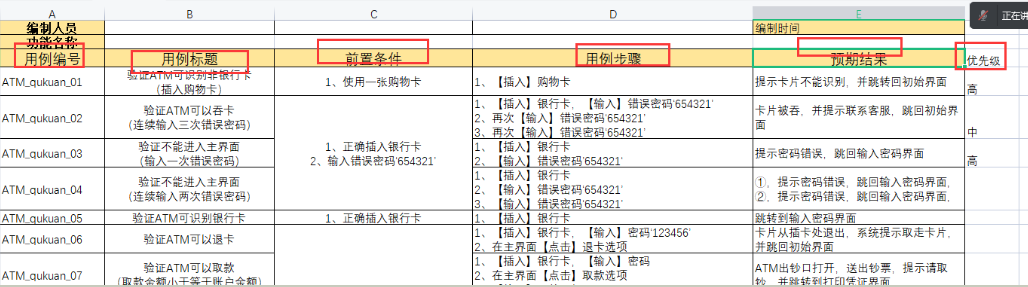 用例编号,用例标题,前置条件,测试步骤,预期结果,优先级 (必写)