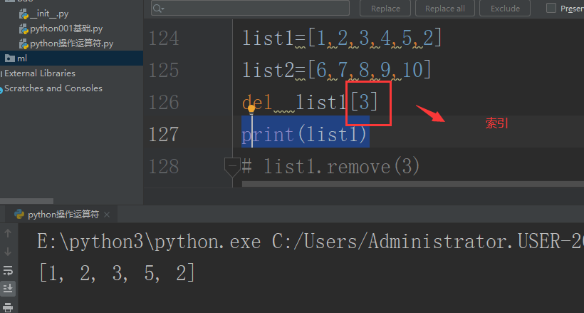 6、del 索引删除(输入的是索引位,删除的是索引位上的数据,索引位从0开始)