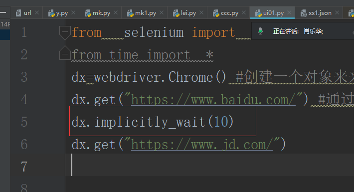 2、隐式等待: 当元素在时间内运行成功,就会节约时间,如果没有成功就等到设置的时间