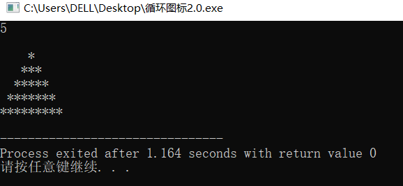 #include<stdio.h> int main(){ int line,i,n; scanf("%d",&n); printf("\n"); for(line=1;line<=n;line++){ for(i=1;i<=n-line;++i){ printf(" ");} for(i=1;i<=2*line-1;++i) { printf("*");} printf("\n"); } return 0; }