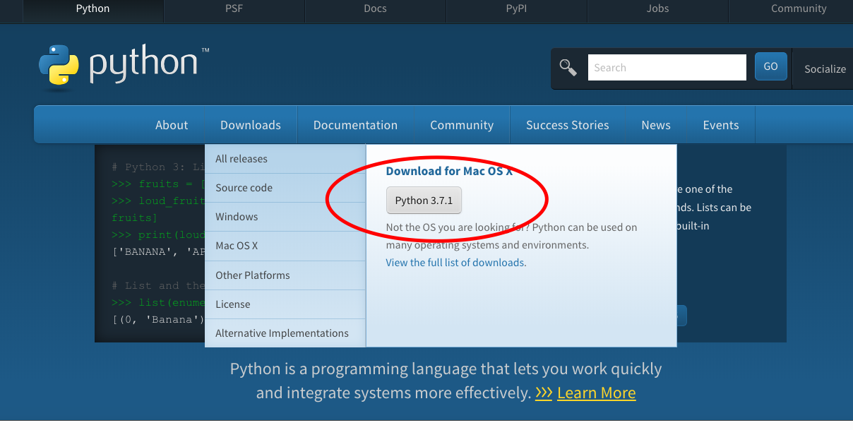 下载最新的 3.7.1 下载地址:https://www.python.org/ftp/python/3.7.1/python-3.7.1-macosx10.9.p