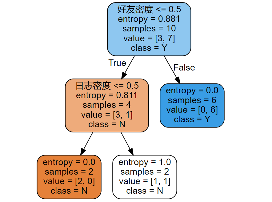 # 使用信息熵,作为分裂标准
