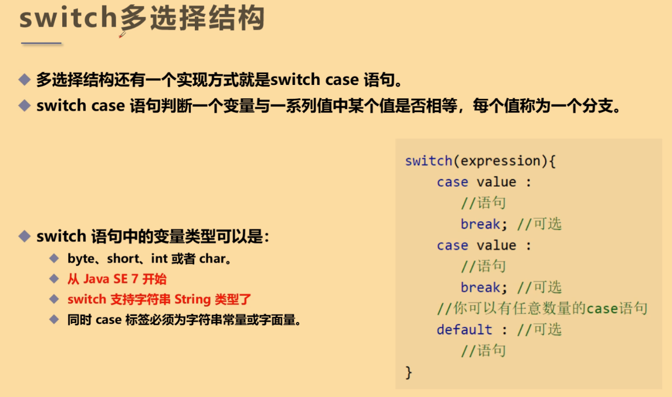 JDK7之后加入String(字符串) - case:后面跟的是要和表达式进行比较的值