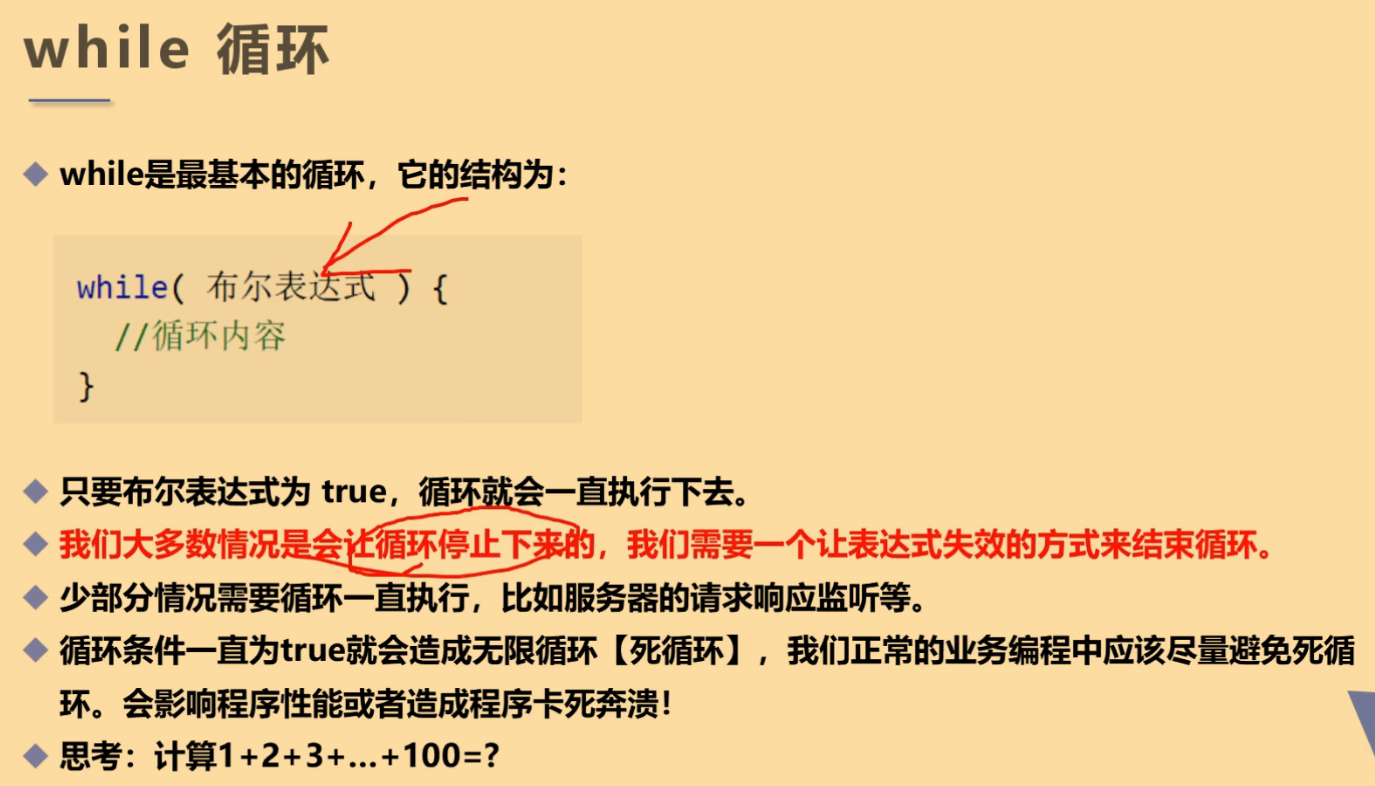我们大多数情况会让循环停止下来的,我们需要一个让表达式失效的方式来结束循环。