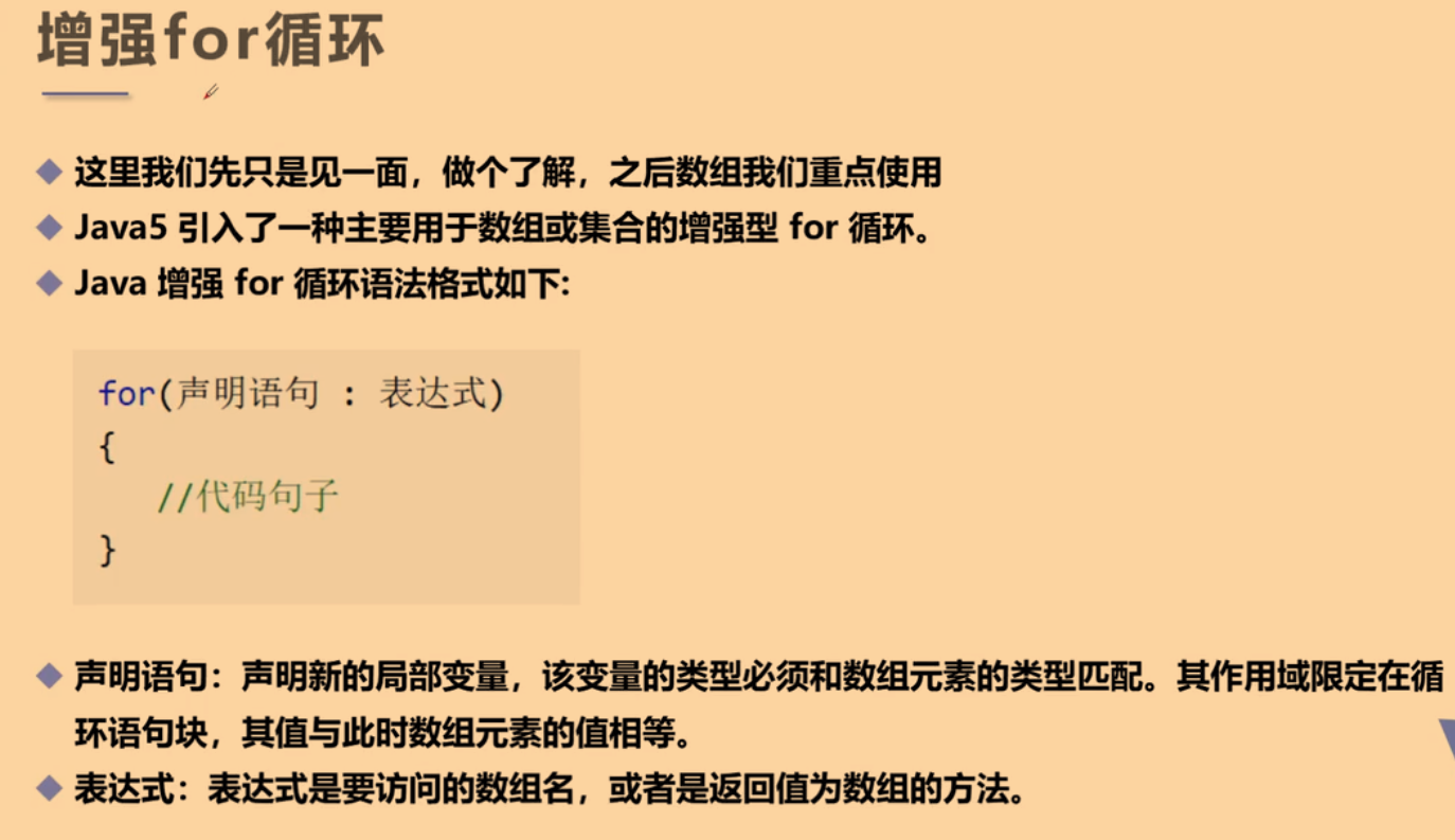 Java5引入了一种主要用于数组或集合的增强型for循环。