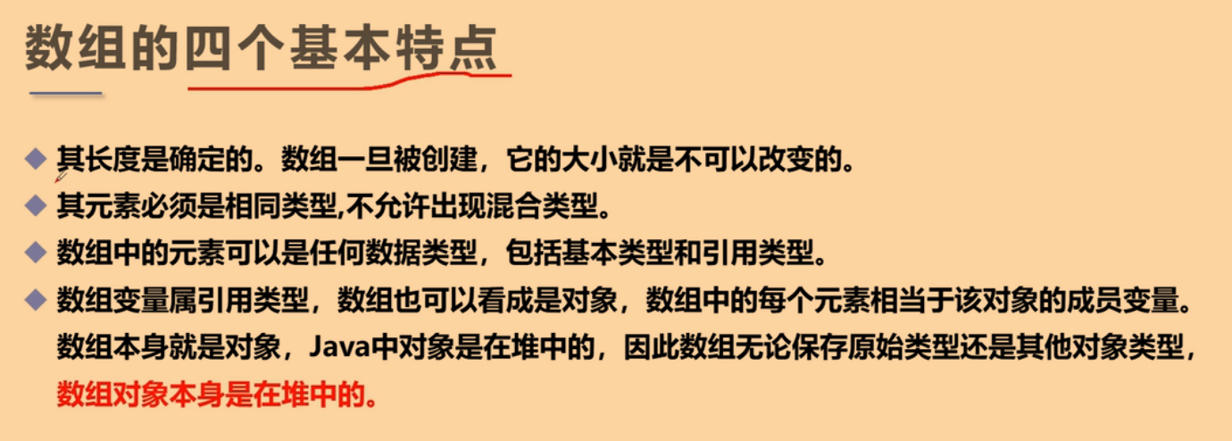 - 其长度是确定的。数组一旦被创建,它的大小就是不可以改变的。(数组一旦定义就是确定的,要想扩容需要创建一个新的才可以)