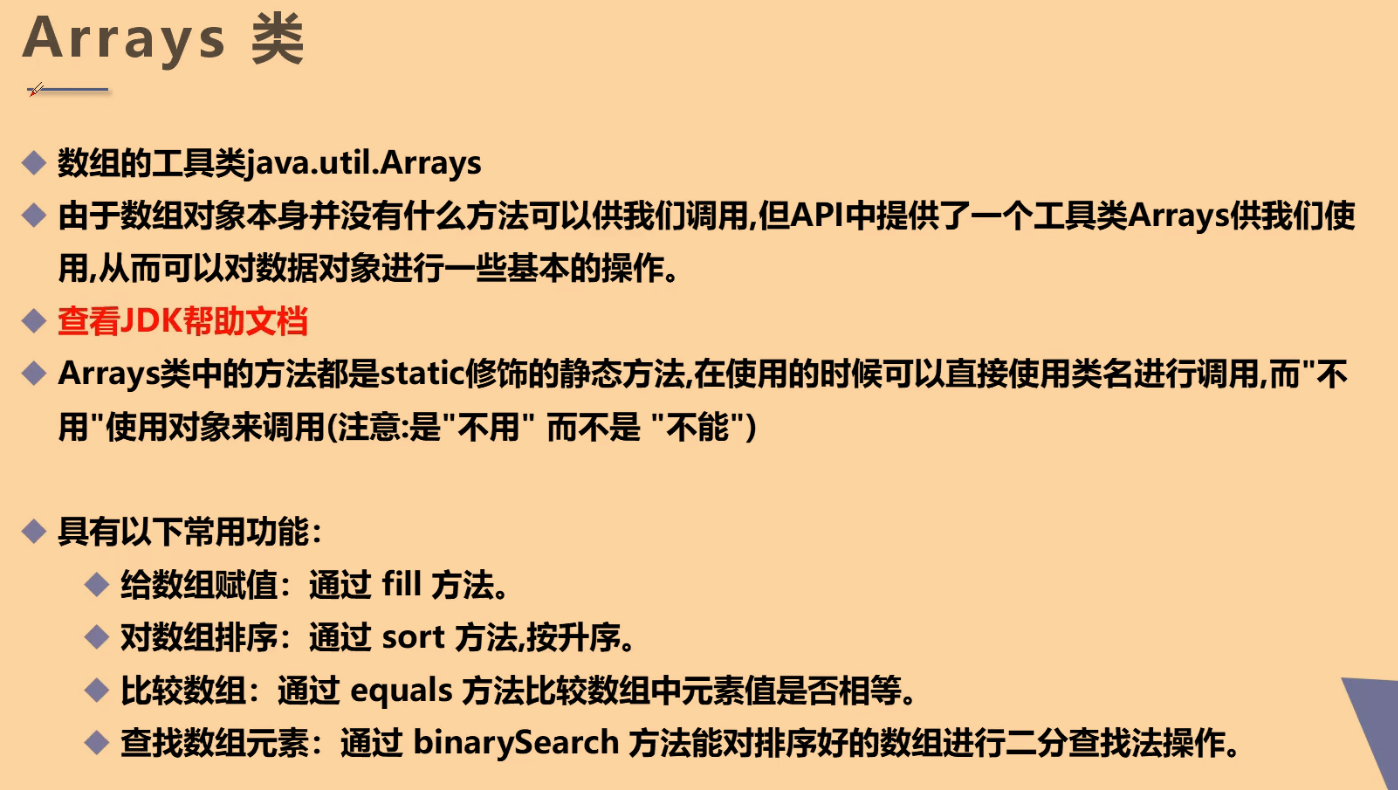 jdk api 1.8_google.CHM Arrays类中的方法都是static修饰的静态方法,在使用的时候可以直接使用类名进行调用,而不用使用对象来调用- 具有以下称用功能: