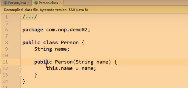 1.定义有参构造之后,如果使用无参构造,显示的(因为在class文件里是有无参构造的)定义一个无参的构造
