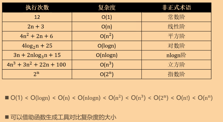 - O(1) < O(logn) < O(n) < O(nlogn) < O(n 2 ) < O(n 3 ) < O(2 n ) < O(n!) < O(n n )