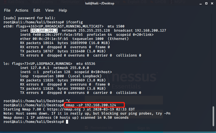 攻击机nmap -sP 192.168.200.124查询靶机IP地址是否活跃\