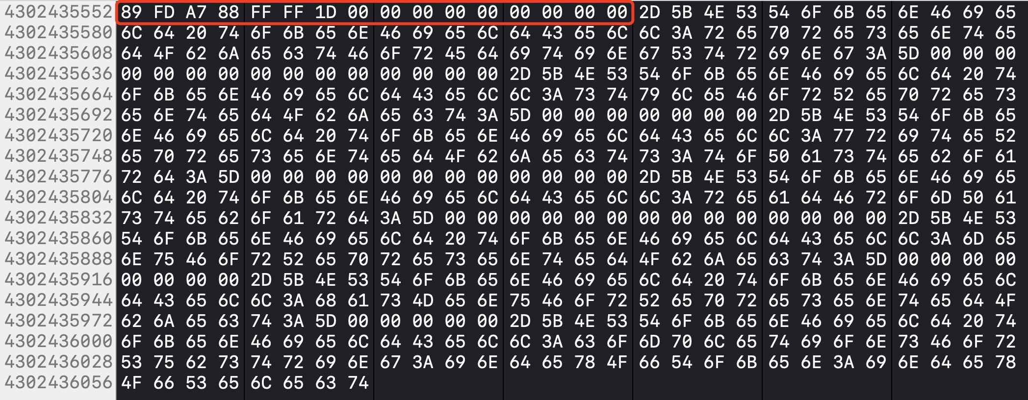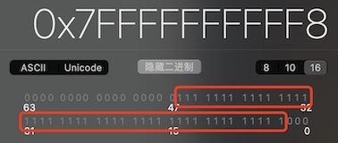 输入obj的内存地址可以看到只有前8个字节有值,但已经分配了16个字节的内存空间