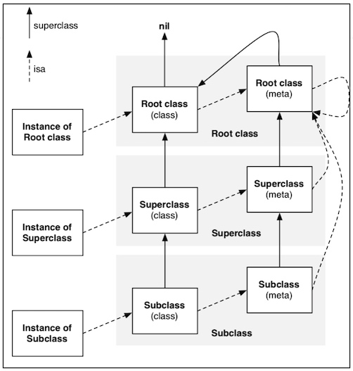 - isa找meta-class,方法不存在,就通过superclass找父类