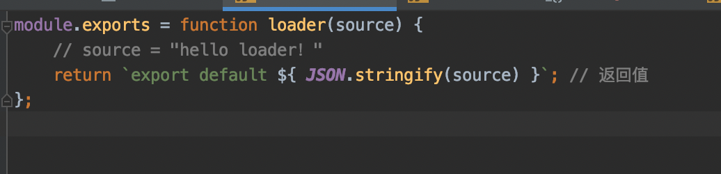 export default function loader(source) { source = "hello loader!" return `export default ${ JSON.stringify(source) }`; // 返回值 };