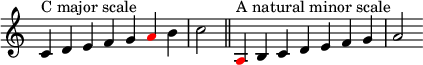 Like many musical scales, the major scale is made up of seven notes [音符]: the eighth duplicates the first at double its frequency so that it is called a higher octave [八度] of the same note (from Latin "octavus", the eighth). A natural minor scale is a diatonic scale [自然音阶] that is built by starting on the sixth degree of its relative major scale. For instance, the A natural minor scale can be built by starting on the 6th degree of the C major scale: