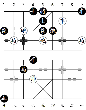 然后无论黑方上将或吃马,红方都是炮五平四绝杀。之前弃炮是为了让黑方的炮无处可打。
