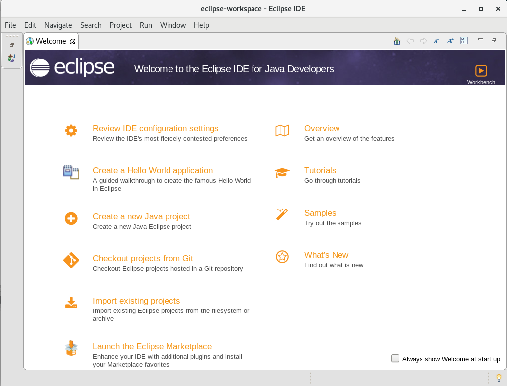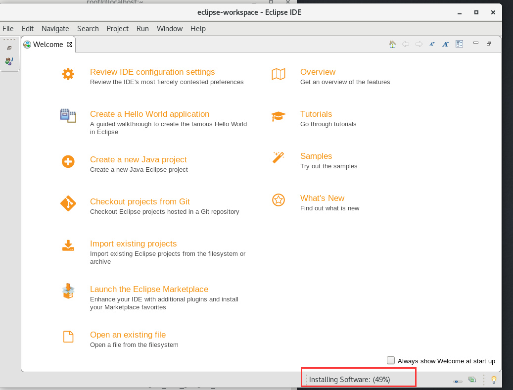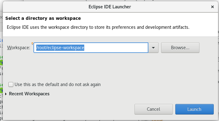 [root@localhost eclipse]# cd [root@localhost ~]# vim .bashrc alias eclipse='cd /usr/local/eclipse&&./eclipse'#目录根据解压位置自定义 [root@localhost ~]# source .bashrc