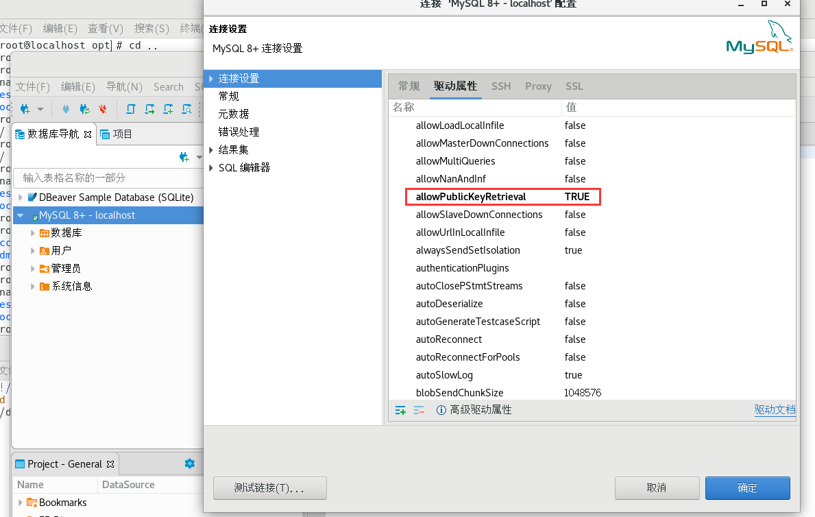 右击数据库编辑连接,进入驱动属性页面,把以下参数改为True,否则连接会报错: